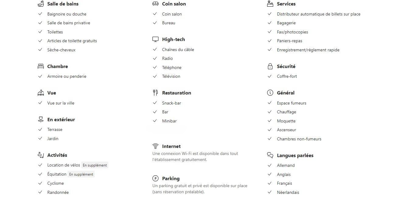 Les chambres comprennent toutes du WIFI gratuit, un coin salon doté de la télévision par câble (Flatscreen), un minibar et une salle de bains avec douche.