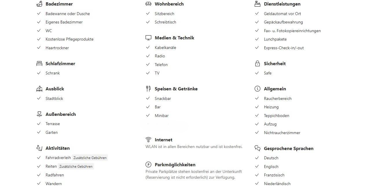 Entspannen können Sie an der Bar, Veranda oder bei schönem Wetter auf der Gartenterrasse. Für Fahrräder, Motorräder oder Autos stehen vor Ort kostenfrei private überdachte Parkplätze zur Verfügung.